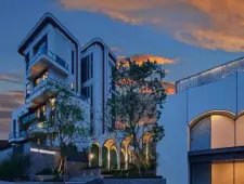 1、项目以"水的流动性"为概念,采用多圆角曲线的外立面设计,打造的超高颜值的美学立面。