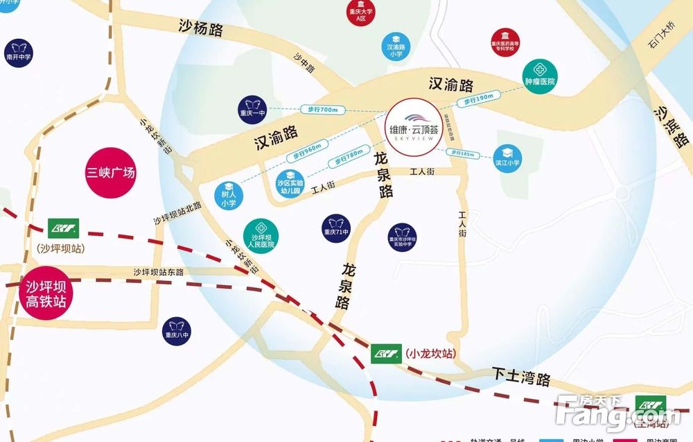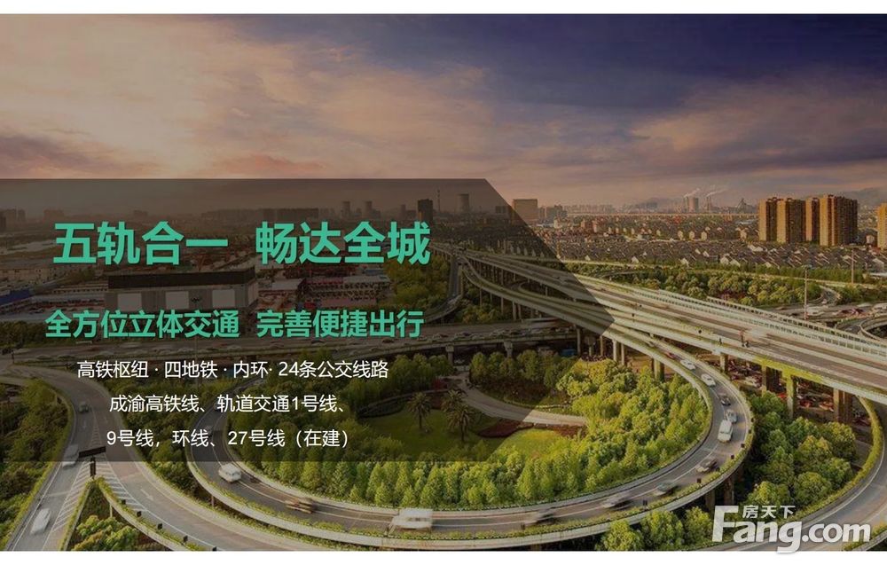 三轨交汇,交通便利,500米内可达高铁站,链接成渝经济圈。